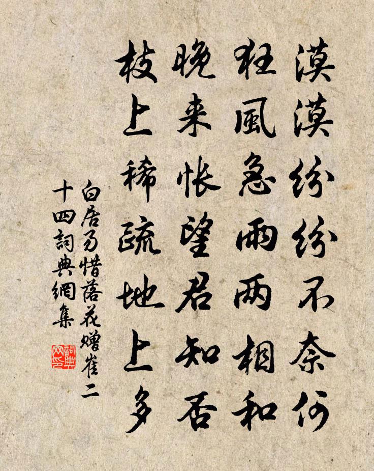 漠漠纷纷不奈何,狂风急雨两相和。晚来怅望君知否?枝上稀疏地上多。