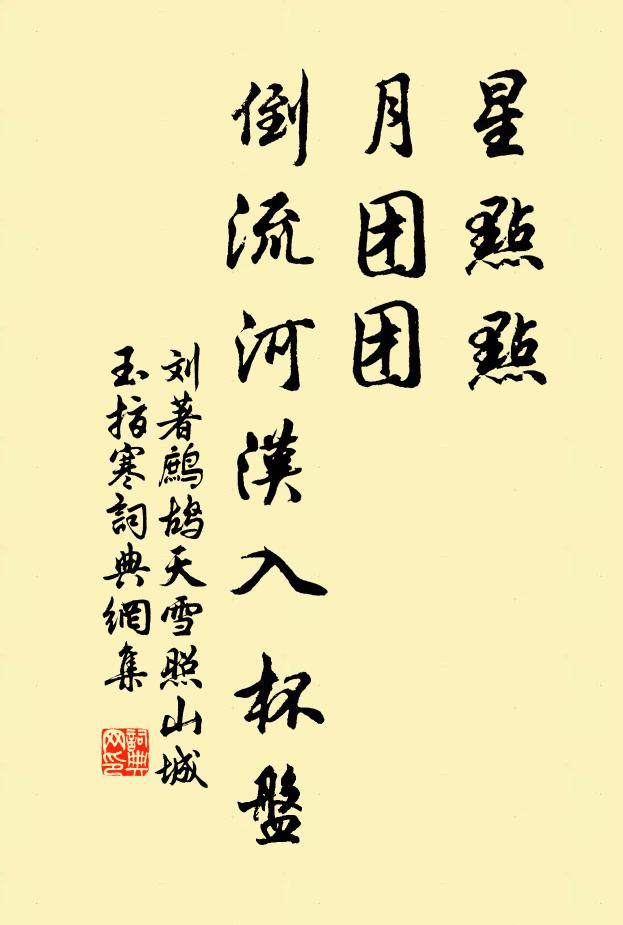 星点点,月团团。倒流河汉入杯盘。