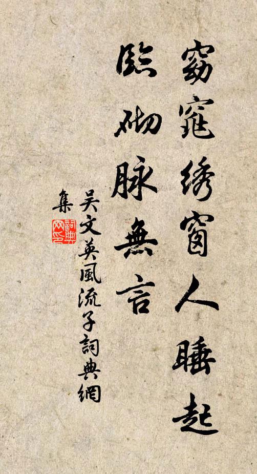 汤舜民〔元代〕一帘飞絮滚凤团,启朱扉眼花撩乱。腕消金钏松,腰瘦翠裙宽。独步盘桓,幽窗下画栏畔。 【驻马听】妆点幽