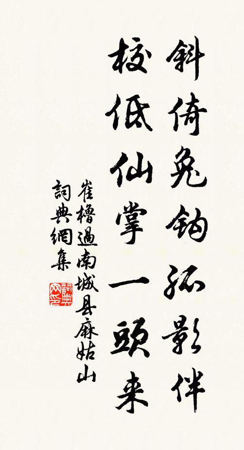 斜倚兔钩孤影伴,校低仙掌一头来