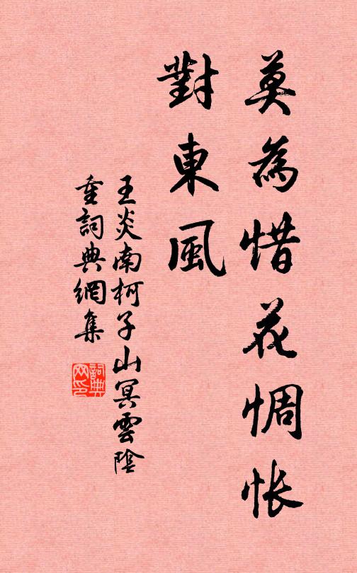 凭栏人向东风泣,茜裙偷傍桃花立;桃花桃叶乱纷纷,花绽新红叶凝碧。