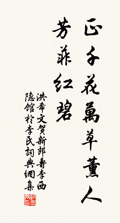 洪希文,作品:《满庭芳 送张译史乐州秩满归代方驿史作》正千花万草薰人,芳菲红碧