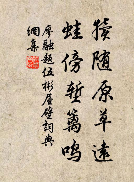 廖融,作品:《退宫妓》犊随原草远,蛙傍堑篱鸣