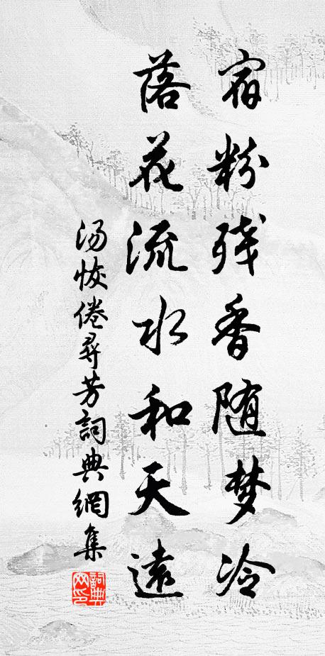 汤恢,作品:《八声甘州·摘青梅荐酒》宿粉残香随梦冷,落花流水和天远