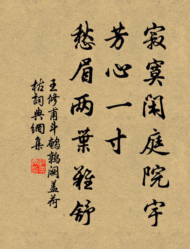 王修甫,作品:《【越调】斗鹌鹑_阙盖荷枯,》寂寞闲庭院宇,芳心一寸,愁眉两叶难舒