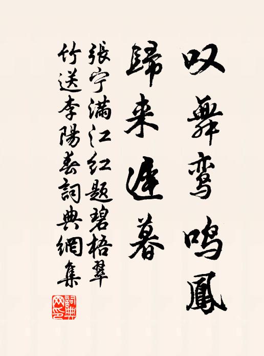 张宁,作品:《满江红·题碧梧翠竹送李阳春》叹舞鸾鸣凤,归来迟暮