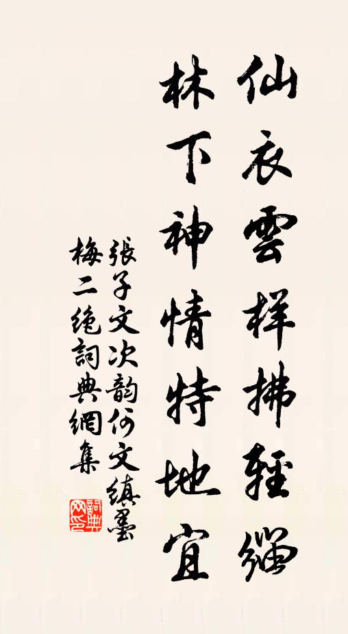 张子文,作品:《次韵何文缜墨梅二绝》仙衣云样拂轻缁,林下神情特地宜